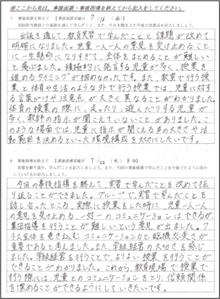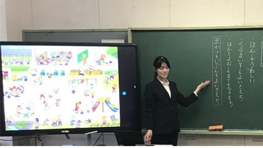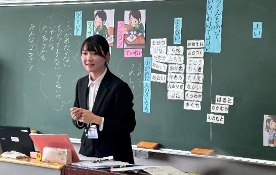 指導案作成や授業準備では戸惑うこともありますが、ご指導いただいている先生方がいつも明るく温かく接してくださり、先生方や児童のおかげで楽しく取り組めています。