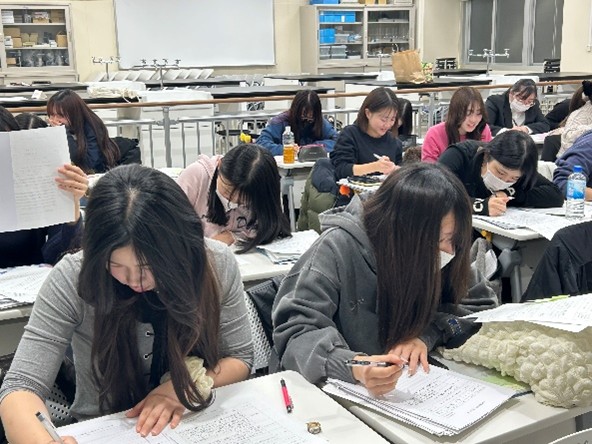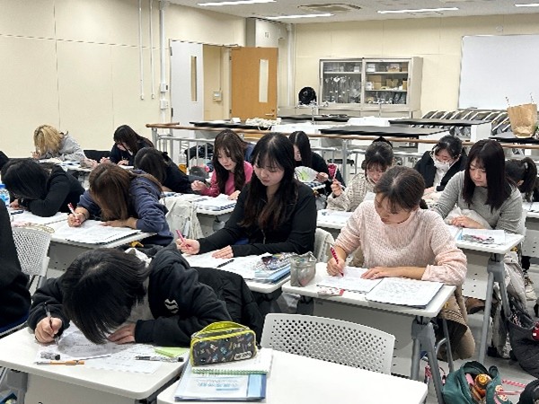 第11回では、下書きの返却と書類の清書を行うとともに、4月までの見通しや今後の準備について説明しました。特に、教育実習に向けて学生の不安や心配をできるだけ軽減し、前向きな気持ちで実習に臨めるよう、春休みの過ごし方や心構えについても伝えました。また、書類の確認については、教員と助手が連携し、学生一人ひとりの書類に目を通しながら、内容の考え方や表現の仕方などについて個別に指導を行いました。次回は、4月に実施予定の教育実習事前指導となります。